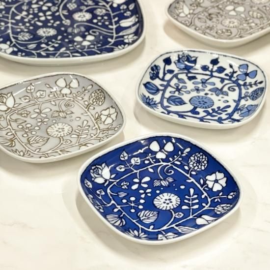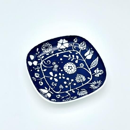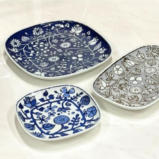 たくさんの花々が散りばめられた北欧風のデザインが人気のかわいらしい角取皿。