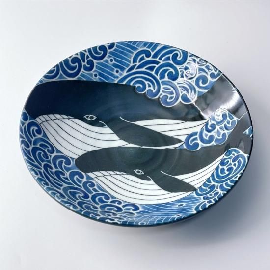 豪快で迫力あるくじらが描かれた深皿です。