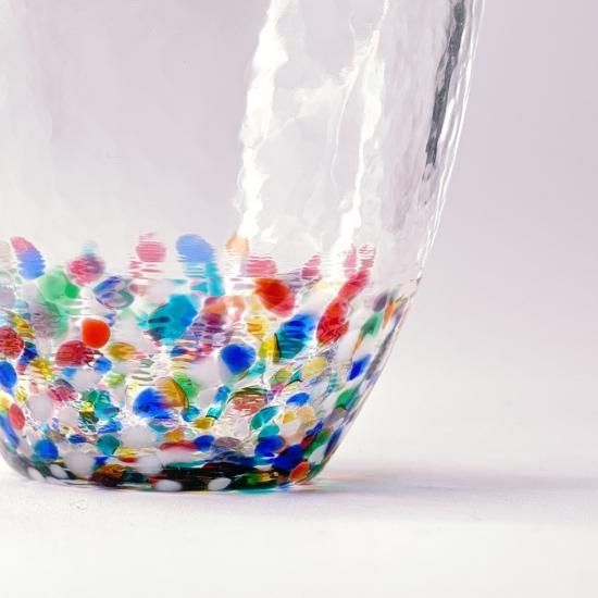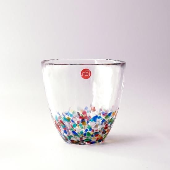 散りばめられた色ガラスが青森の夏の風物詩「ねぶた祭」の煌めきを表現しているフリーグラスです。