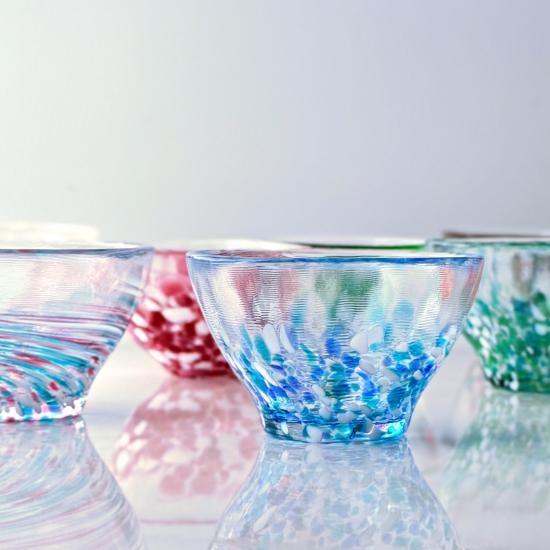 イトロリドリの色ガラスが美しい津軽びいどろの盃です。