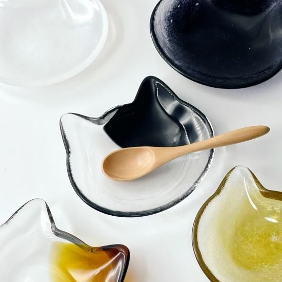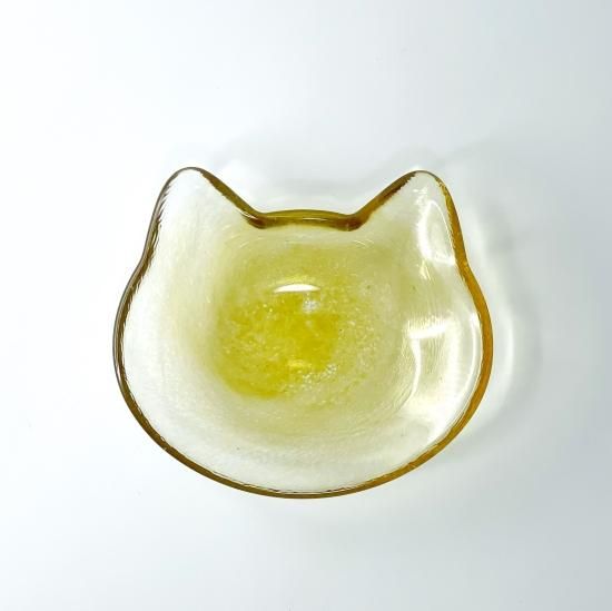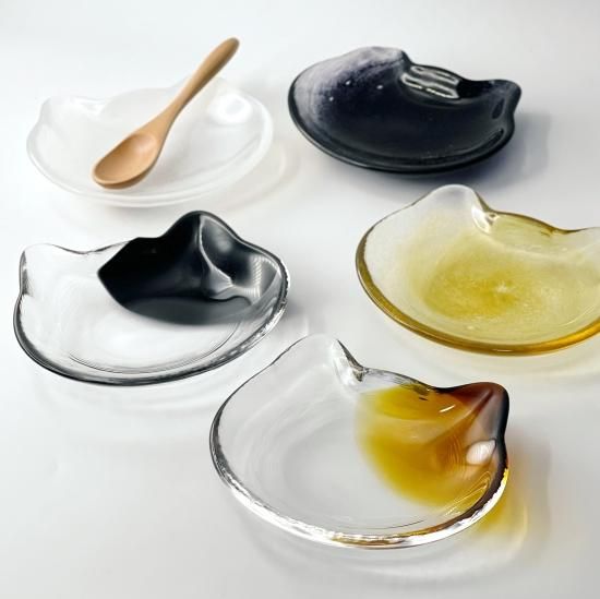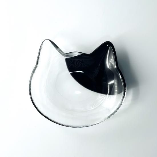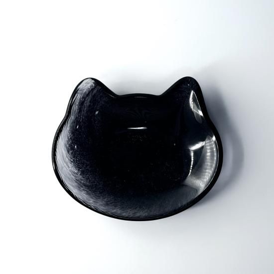 ネコ顔のシルエットの模したハンドメイドガラスの小皿です。