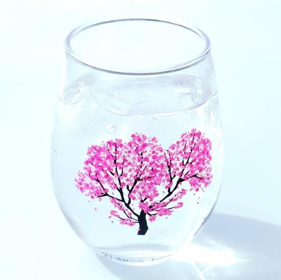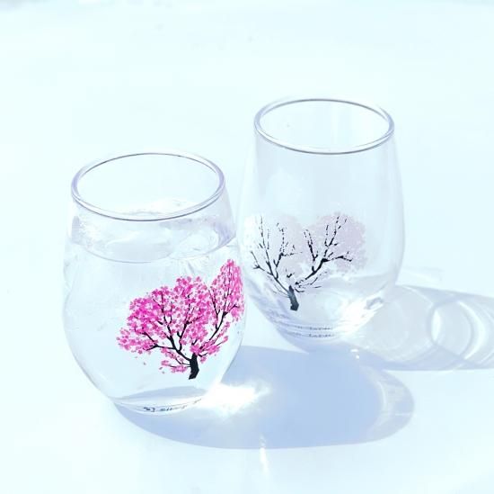 17度以下の冷たいドリンクを注ぐとグラスにピンクの桜が舞い咲きます。