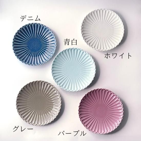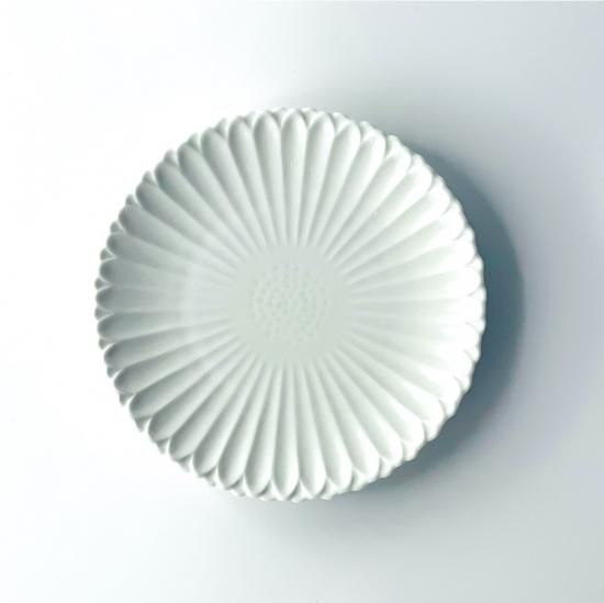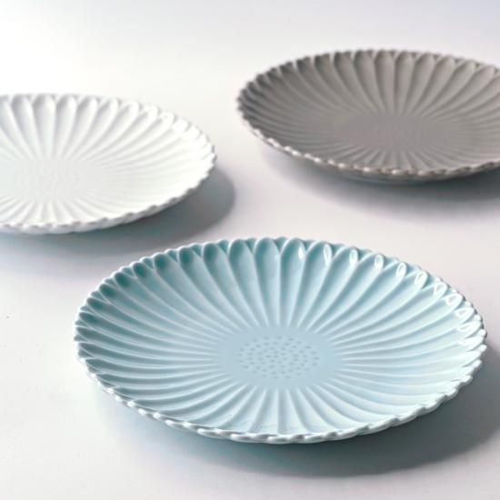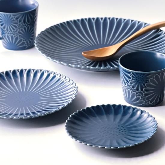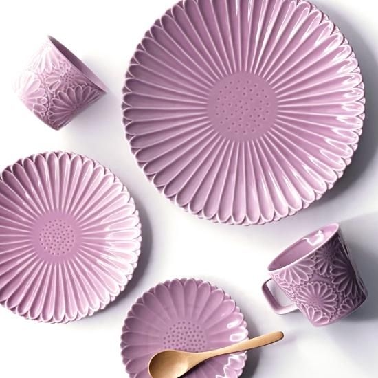 花びらを二重にした縁取りと陽刻の技法による器の凹凸が、素敵な光の陰影を創り上げる『マリーゴールドシリーズ』です。