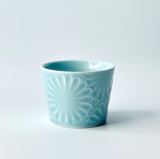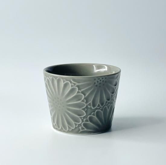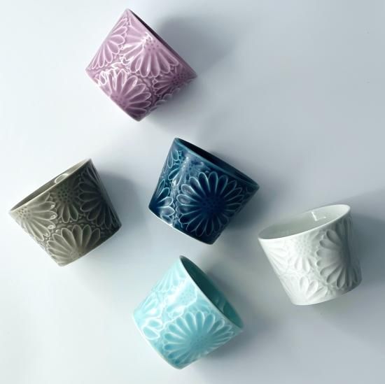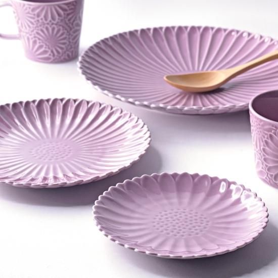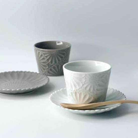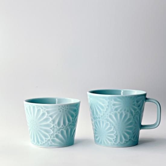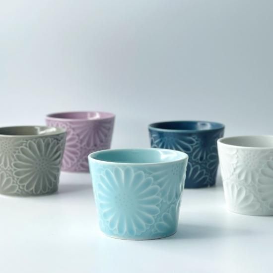 陽刻の技法によって器に浮かび上がる花びらの凹凸が、素敵な光の陰影を創り上げる『マリーゴールドシリーズ』です。