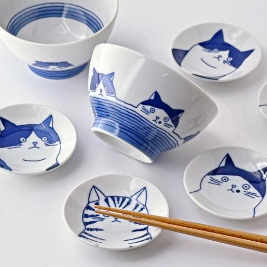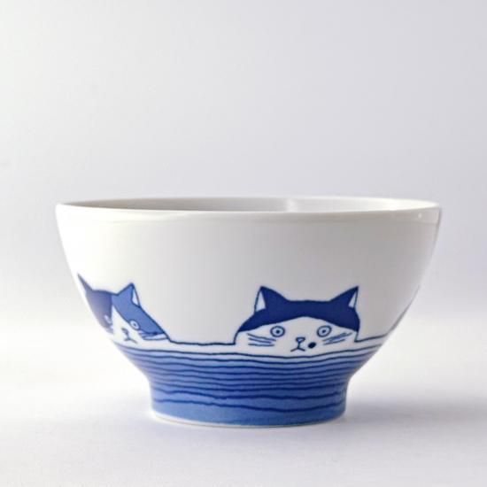 定番形状の飯碗は側面にぐるりと5匹の猫ちゃんが描かれています。