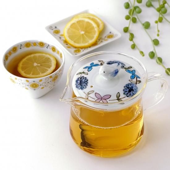 機能的でありながらかわいらしいフォルムのガラスポットに波佐見焼のかわいらしい蓋がテーブルを華やかに彩ります。