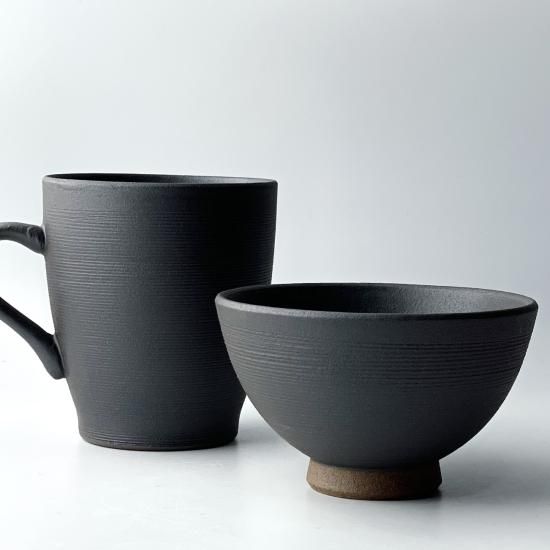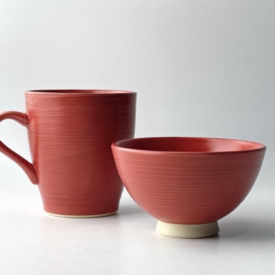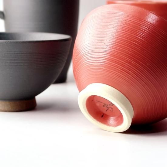 温かみある土の生地、それぞれ特徴的な釉薬にうっすらと横に走るライン。