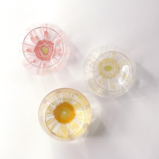 ゆらゆらコロンコロンと丸っこいグラスに液体を注ぐとふわっと水面にお花が広がるように見えます。