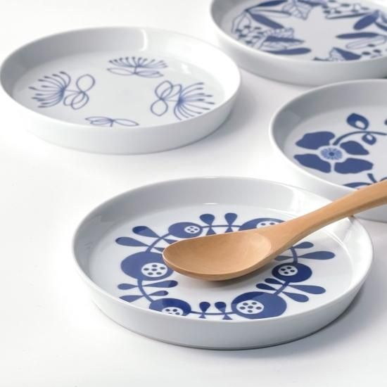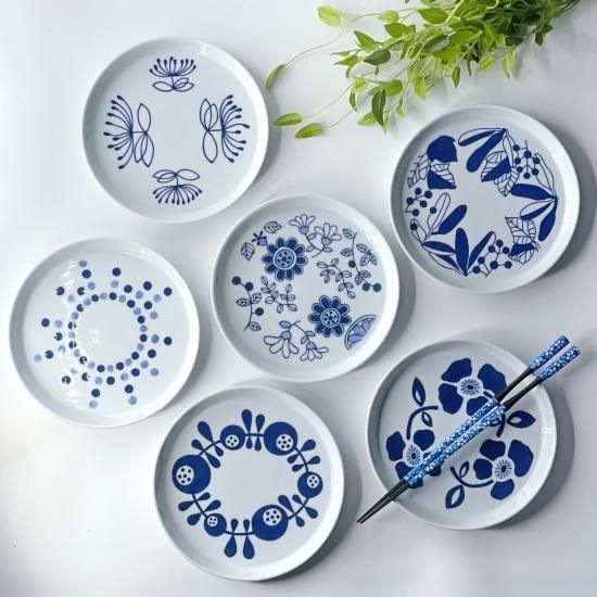 和食器らしい白磁に藍でデザインされたポップな草花たち。