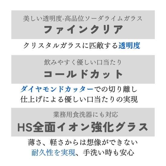 ※従来のグラスに比べて高い強度を保っておりますが、ガラス製品ではありますので強い衝撃が加えられると破損しますことご了承ください。