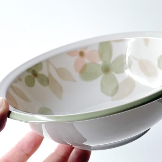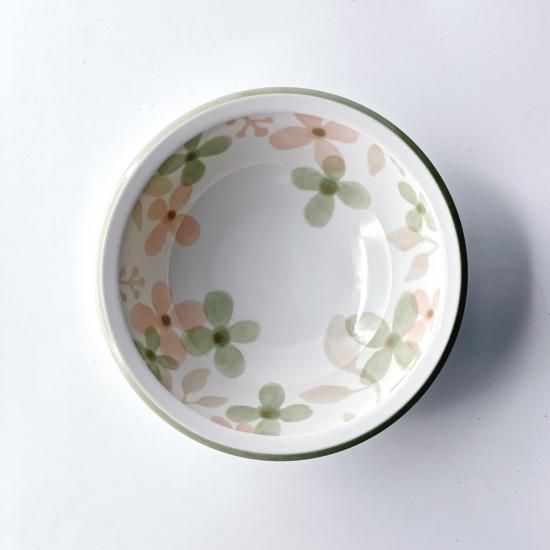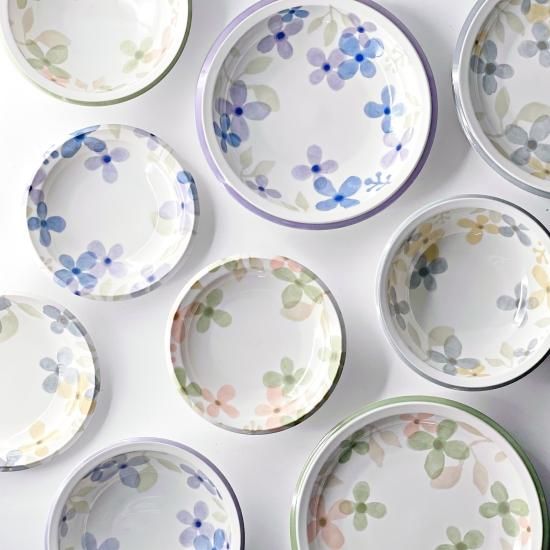 くすみカラ―を水彩画風に落とし込んだ花柄デザインがかわいらしい器です。