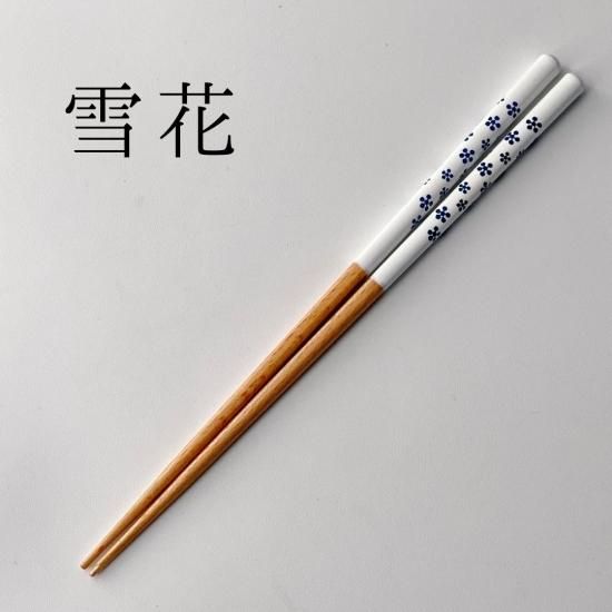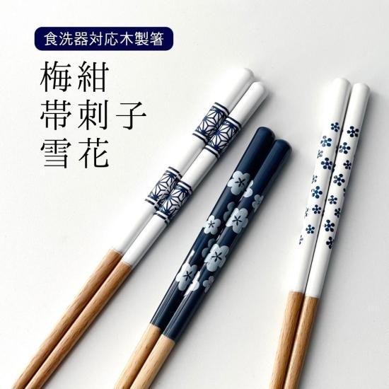 梅 帯刺子 雪花といった和モチーフのポップなお箸です。