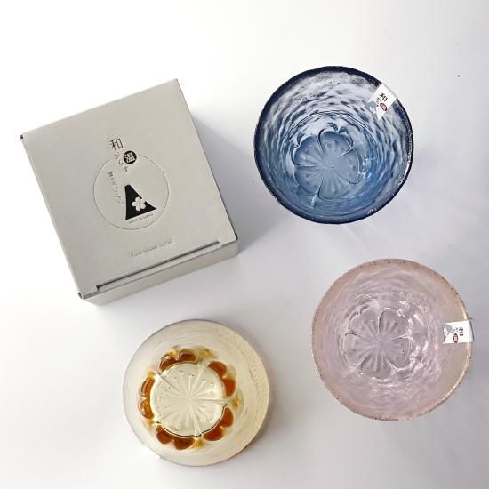 底に映る桜を眺めながら焼酎などを楽しむことができるちょっと贅沢な富士山型のグラスです。