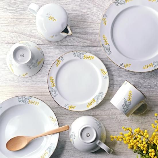 そんなミモザが上品にデザインされた波佐見焼ミモザリッチの器たち。