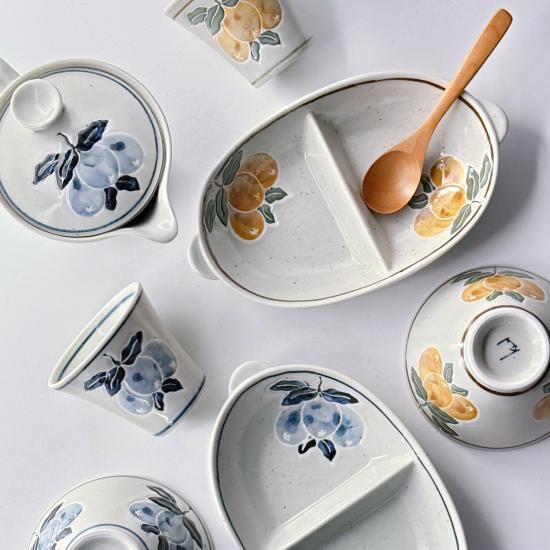 長崎県の特産品であるビワをモチーフに、波佐見焼ならではの手仕事で作られる器です。