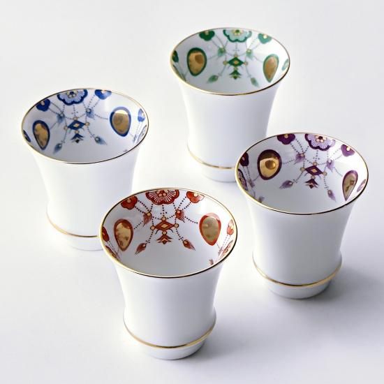 古代インドにおいて宝石や珠などを紐に通して編み繋いだ装身具がモチーフといわれる瓔珞文(ようらくもん)、その美しさをグラスに閉じ込めた気品あふれる酒グラスです。