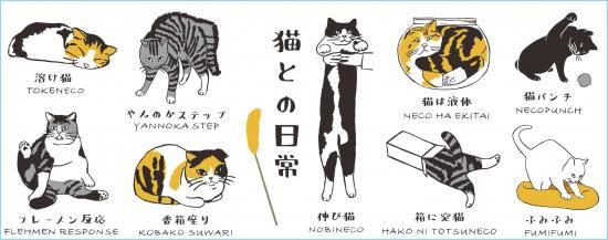 「猫との生活」「猫との日常」の2パターンあり、湯呑をぐるりと周回して様々な猫ちゃんがデザインされています。