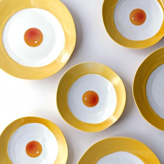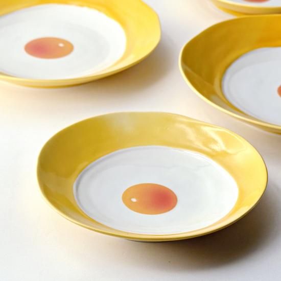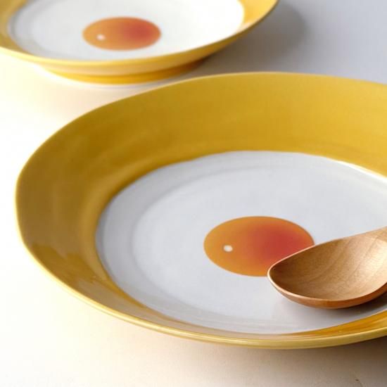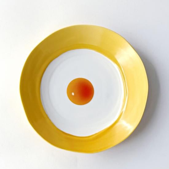 「黄身が好き」は、やや深みのある「なぶり皿」に目玉焼きが描かれたユニークかわいい器です。