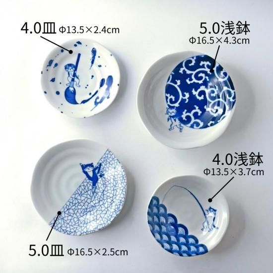 深みのある呉須色で描かれた波や格子模様が美しい中皿はケーキやパンなど普段使いにぴったりの使いやすいサイズです。