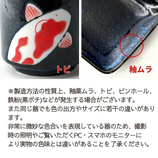 ※製造工程の都合で釉薬のタレ・カスレ・トビ、色の濃淡差やムラ、鉄紛、カスレなど同じデザインの器でも個体差がございます。