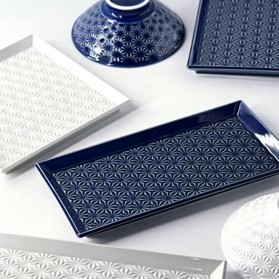 伝統的な麻の葉文様を精緻に彫り込んだちょっと特別な長角皿。