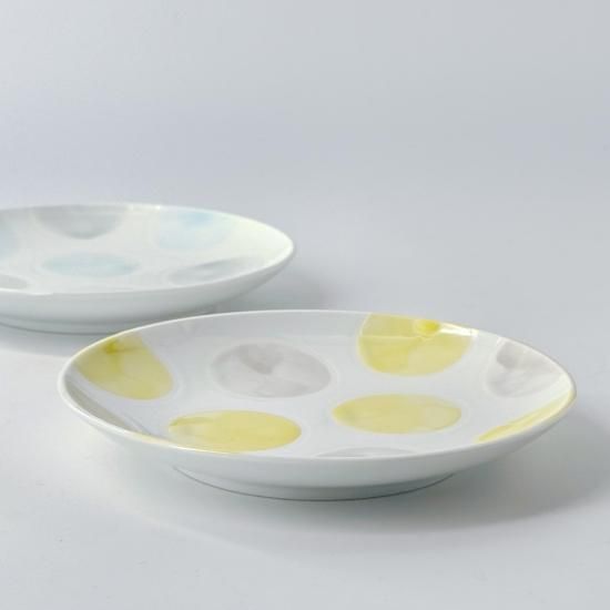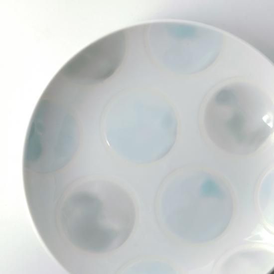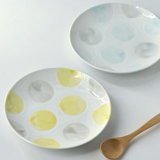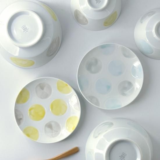 透けるような美しい白磁に、手書きの水玉を淡くにじませた、かわいらしさ満点の「みずたま」シリーズ。